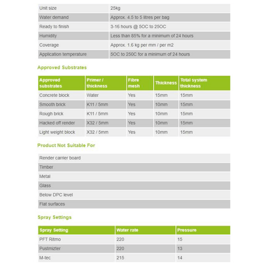 Contact for availabilityMR1 EcoRend Monocouche One Coat Render- 25kg Powder Green